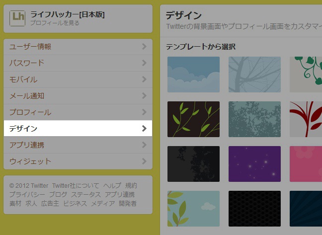 設定画面で「デザイン」を選びます。