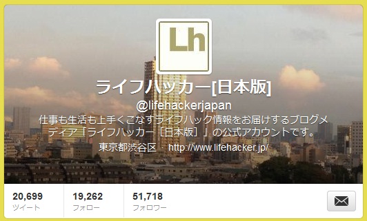 ライフハッカー[日本版]のヘッダー写真は、弊社社屋から撮った2012年9月19日の夕日です。使ったカメラはiPhone(4S)でしたが、iPhoneのカメラでも十分カバー写真として使えるかと。これから秋が近づく時期ですので、Twitterのプロフィール写真を秋っぽくしてみるのもいいかもしれませんね。