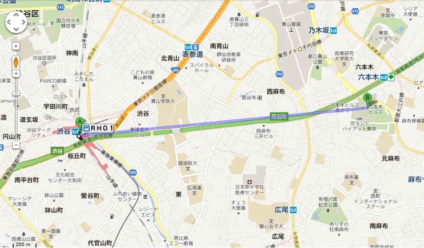 Photo by urawa.例えばこちらは渋谷駅~六本木ヒルズの経路検索です。従来なら恵比寿駅まで行って日比谷線に乗り換えるルートや、銀座線で青山一丁目駅で大江戸線に乗り換えるルートなどが表示されていました。しかし、今回のバージョンアップで、渋谷駅からバスで1本で六本木ヒルズに行けるルートが検索できるようになっています。